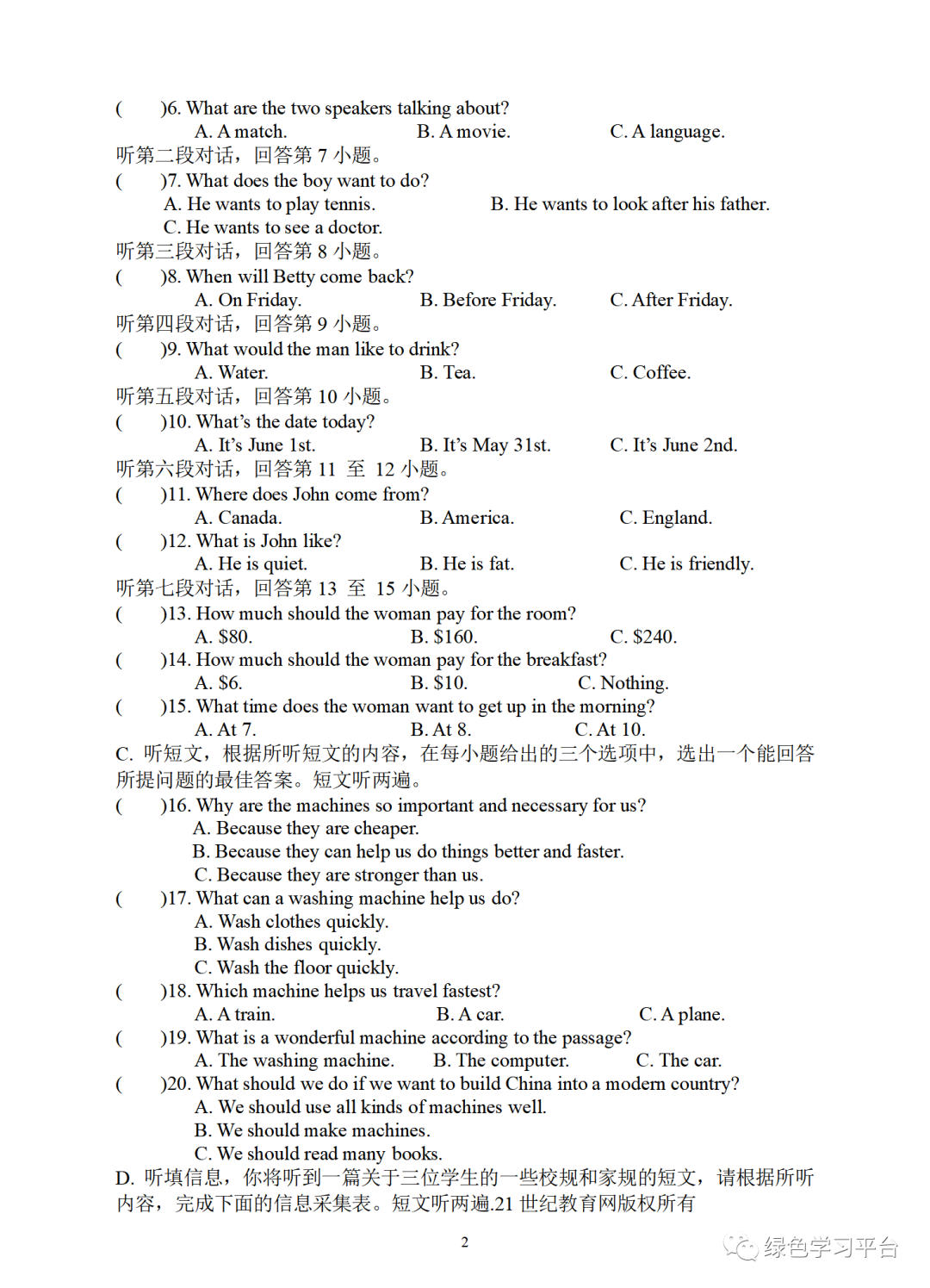 ④Play the recording again.Students listen and match the answers with the questions in 1a.