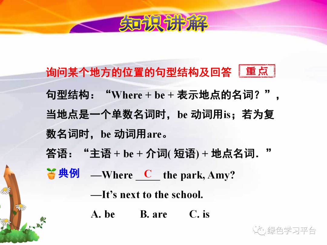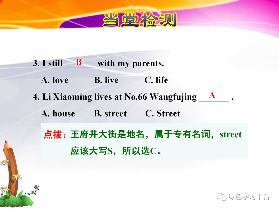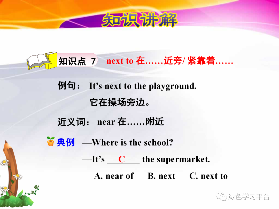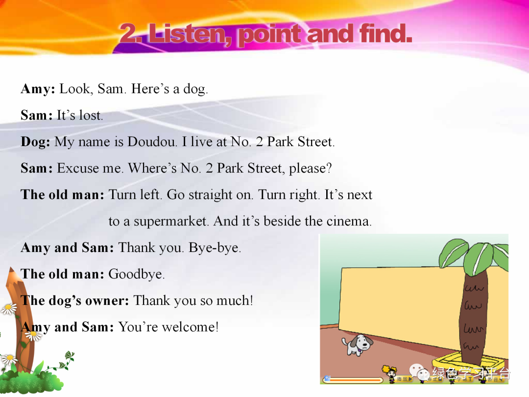 T: Is the school on my left ? (学生听不懂,用中文翻译一遍)