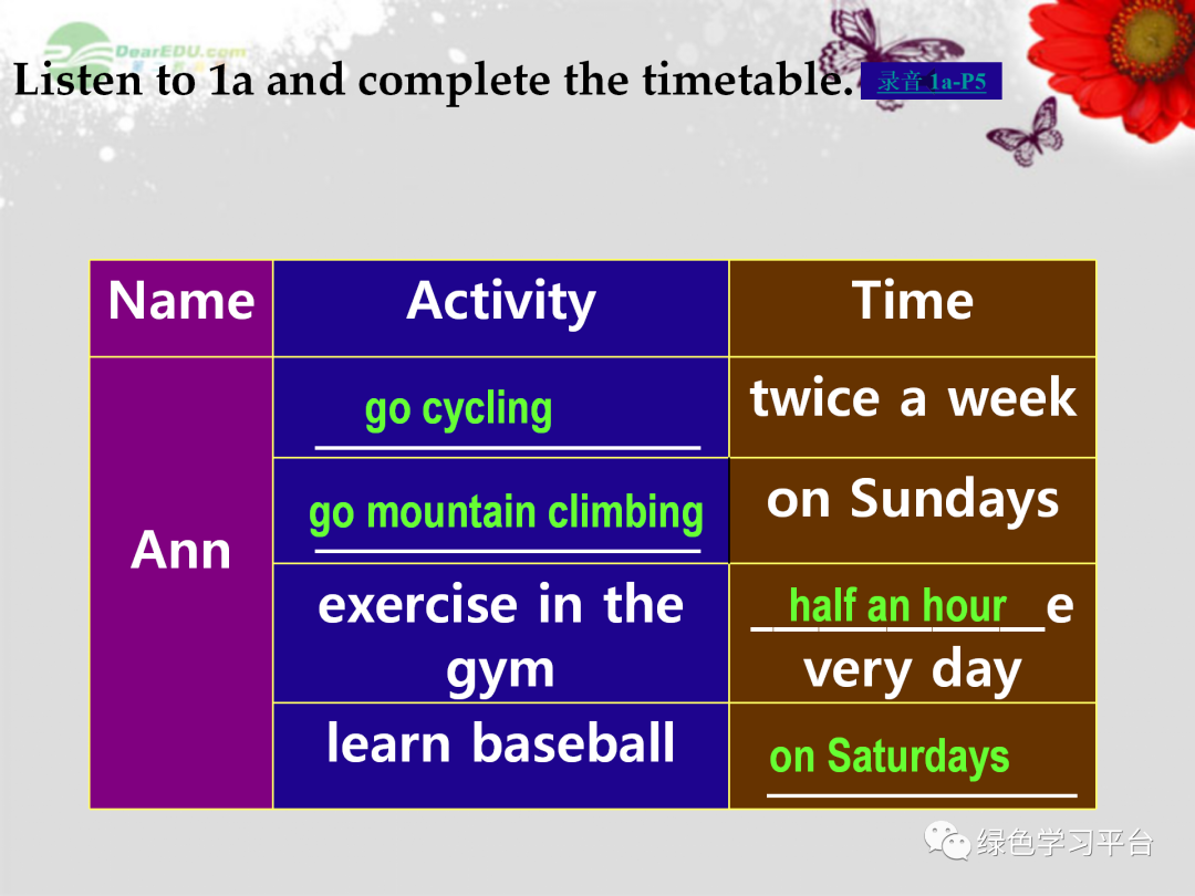 本节课为单元第一课和第二课时,用两课时上完。主要活动为Section A 的1a和2。