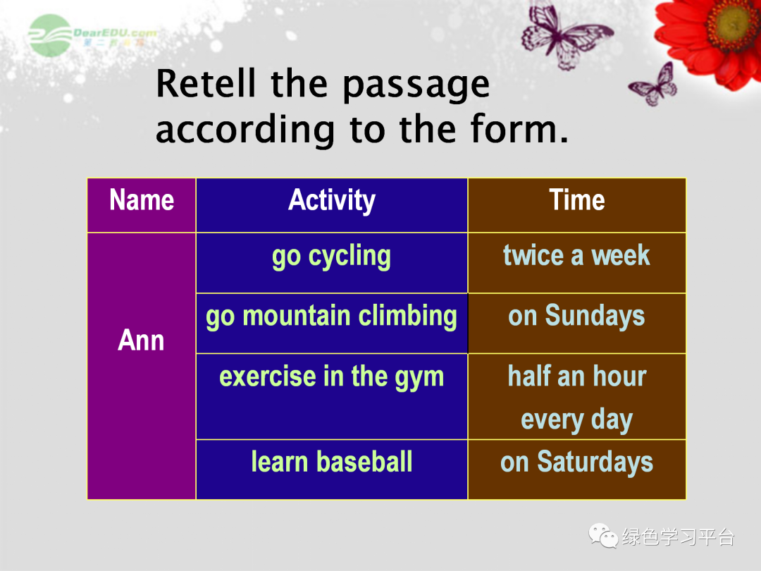 2. 能正确地口头表达有关运动计划和运动爱好的话题。
