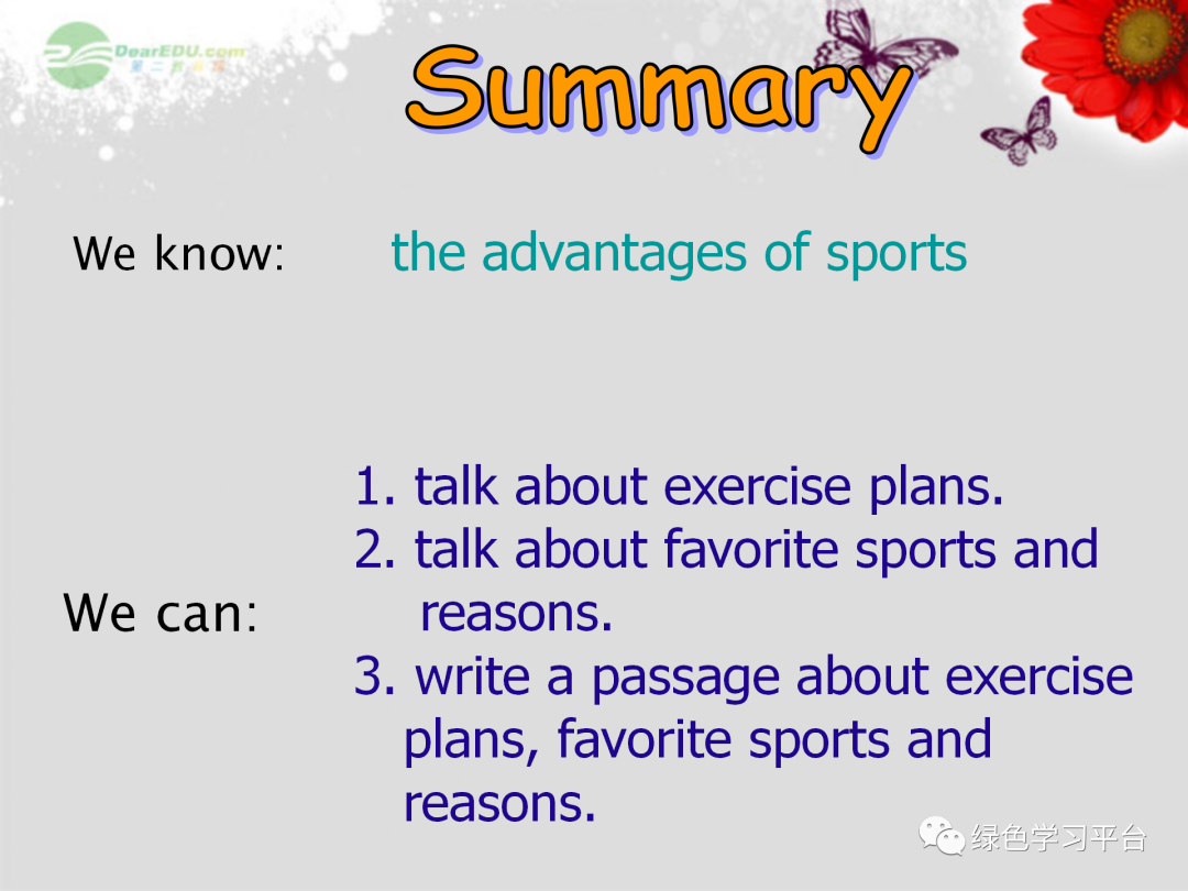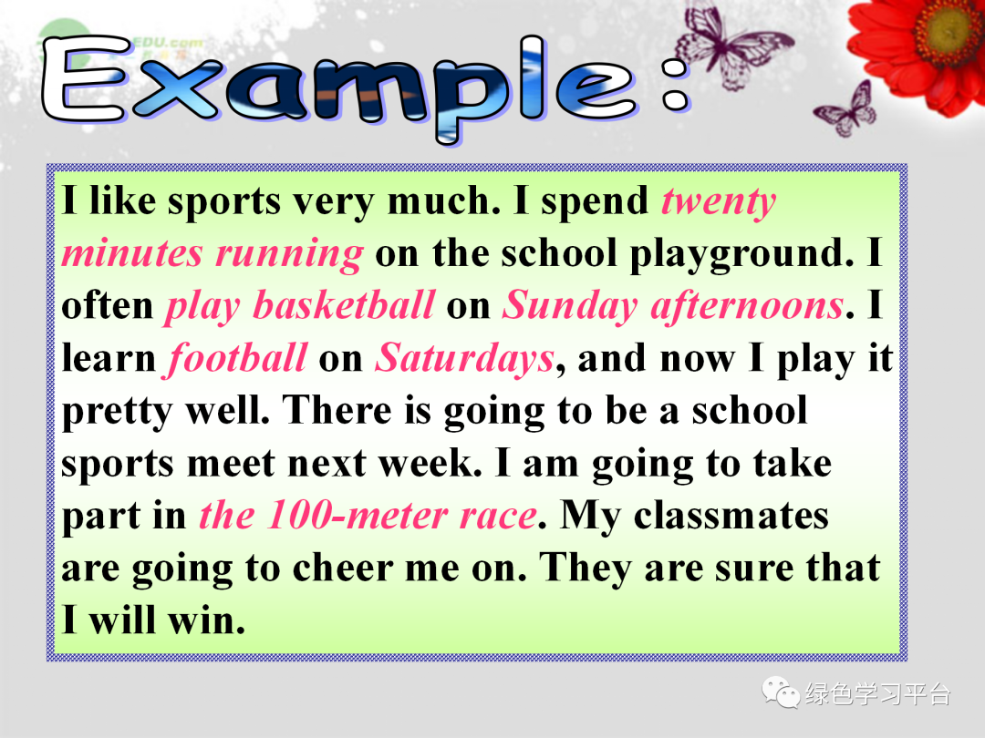 4. 能正确地运用书面表达写出自己的运动计划及运动爱好。