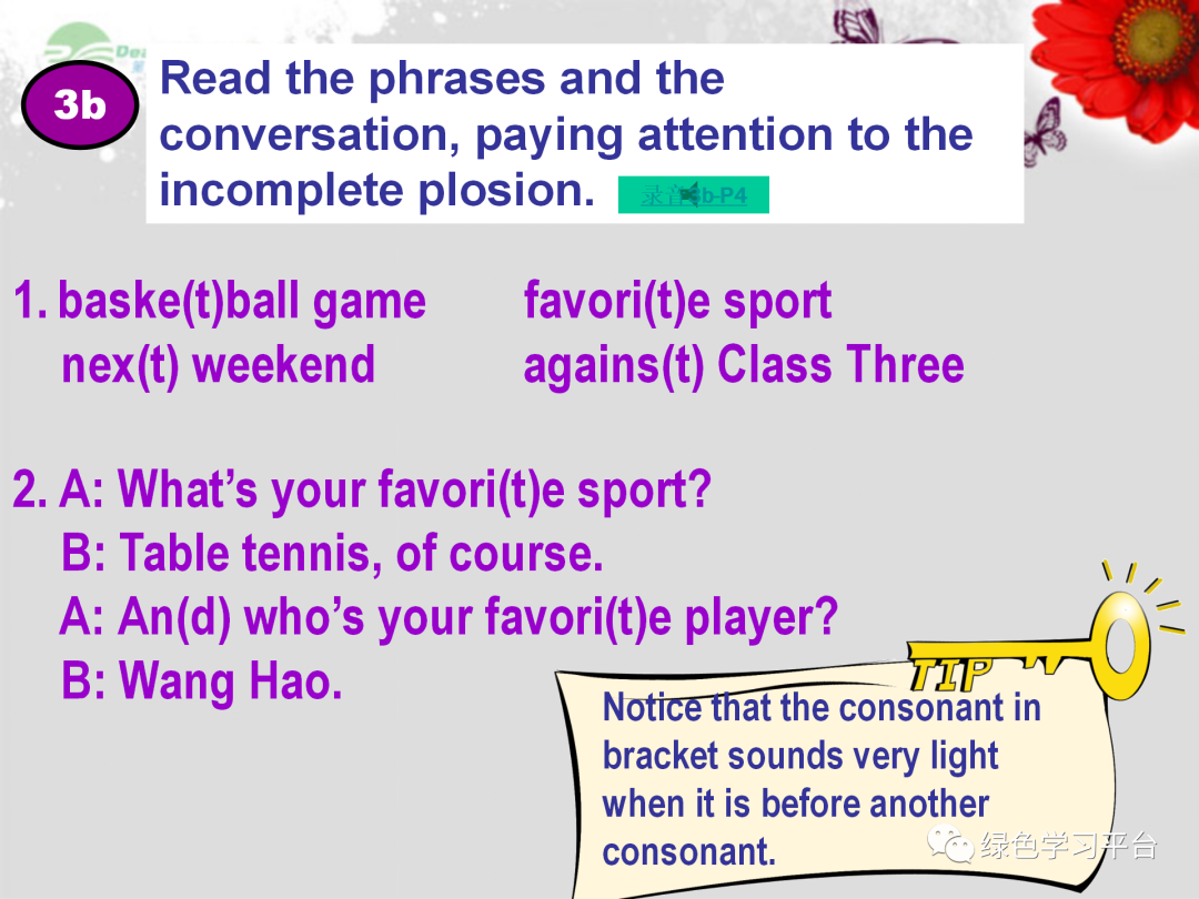 3. 能正确朗读课本的文本材料,准确把握语音、语调及连读。