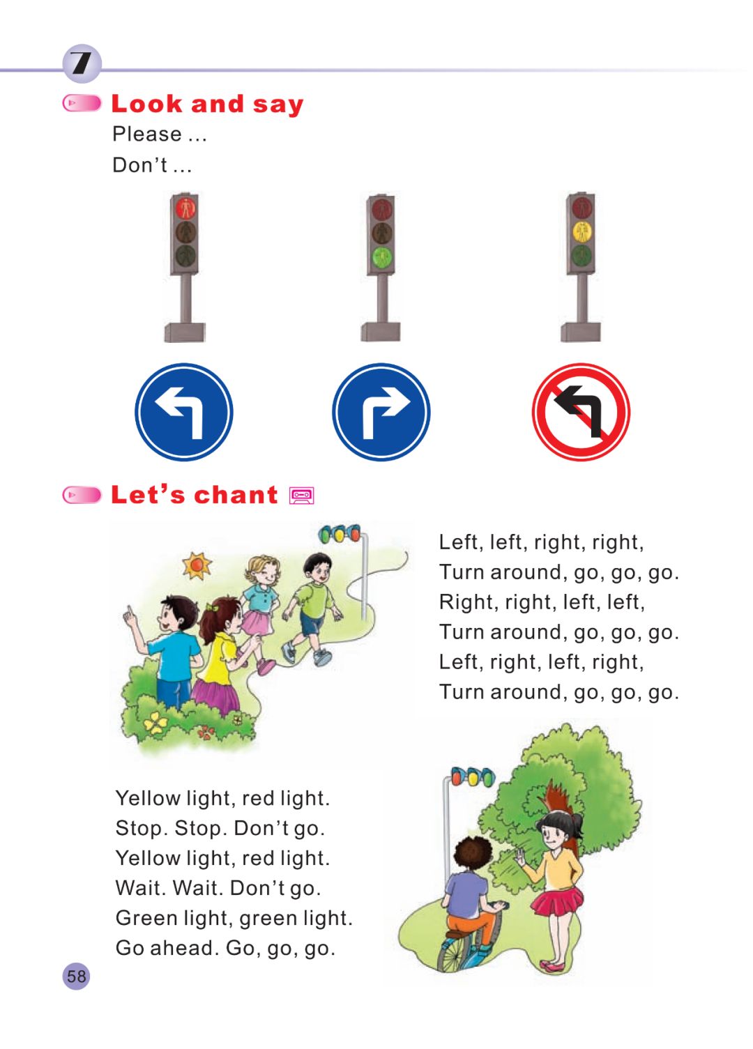 Turn left. Turn right. Don’t turn left. | 向左拐。 向右转。 不要左转。 |