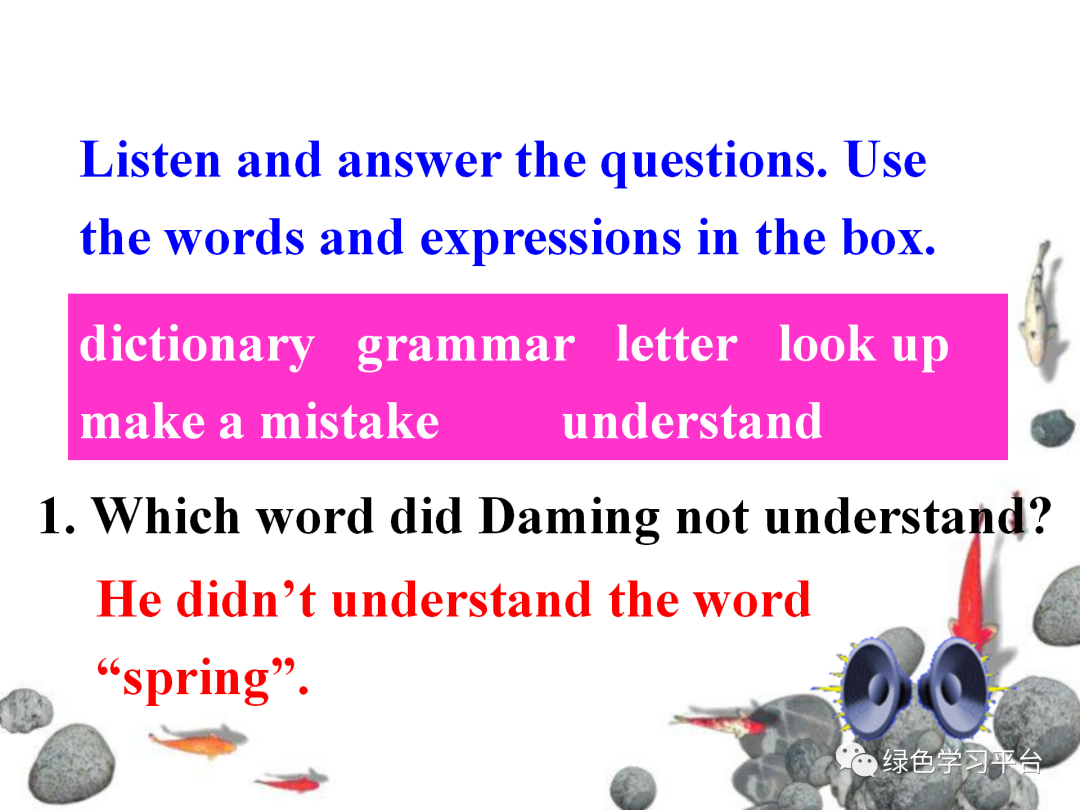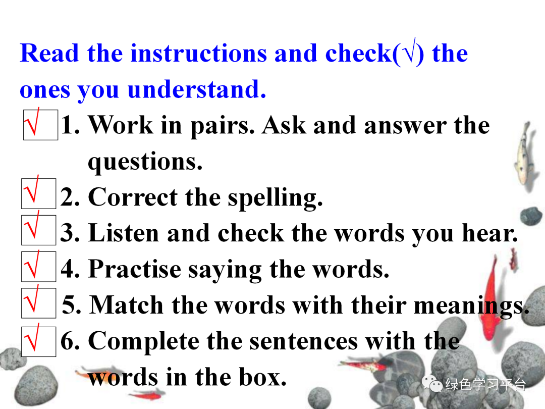 能够正确使用下列单词和词组: dictionary, grammar, letter, look up, make a mistake, understand等。