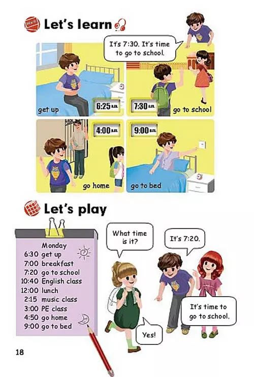 It s 7:30.It s time to go to school.现在是7:30,该去上学了.