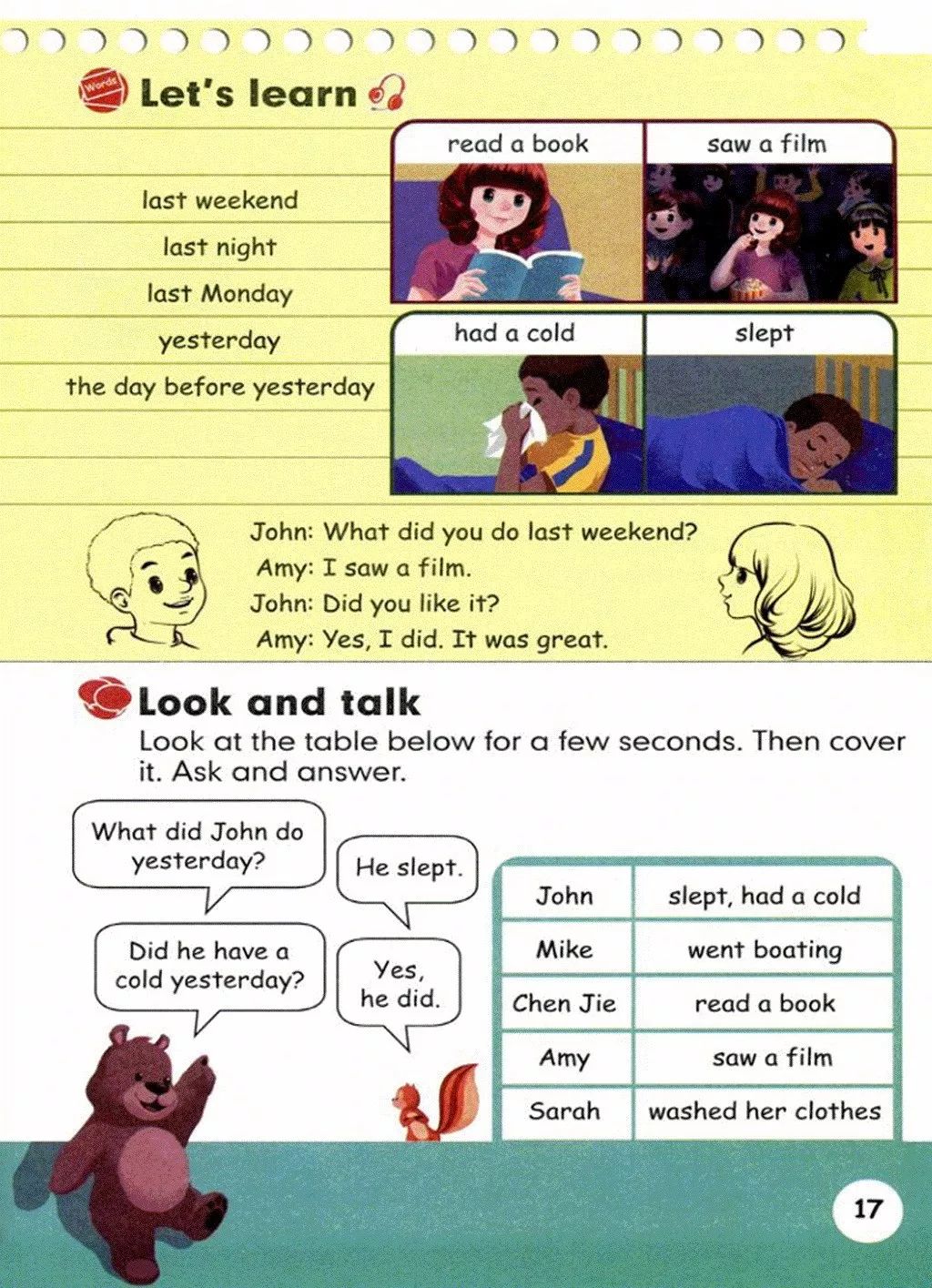 四、1.had a cold 2.saw;film
