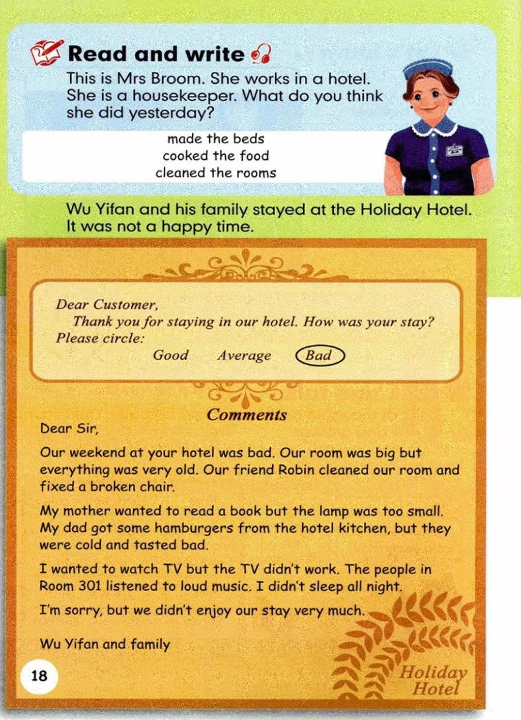 Mike:Yes,I cleaned my room and washed my clothes. 迈克:是的,我打扫了我的房间,还洗了我的衣服。