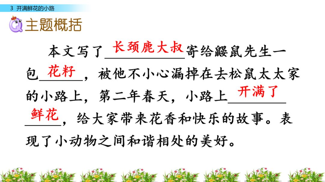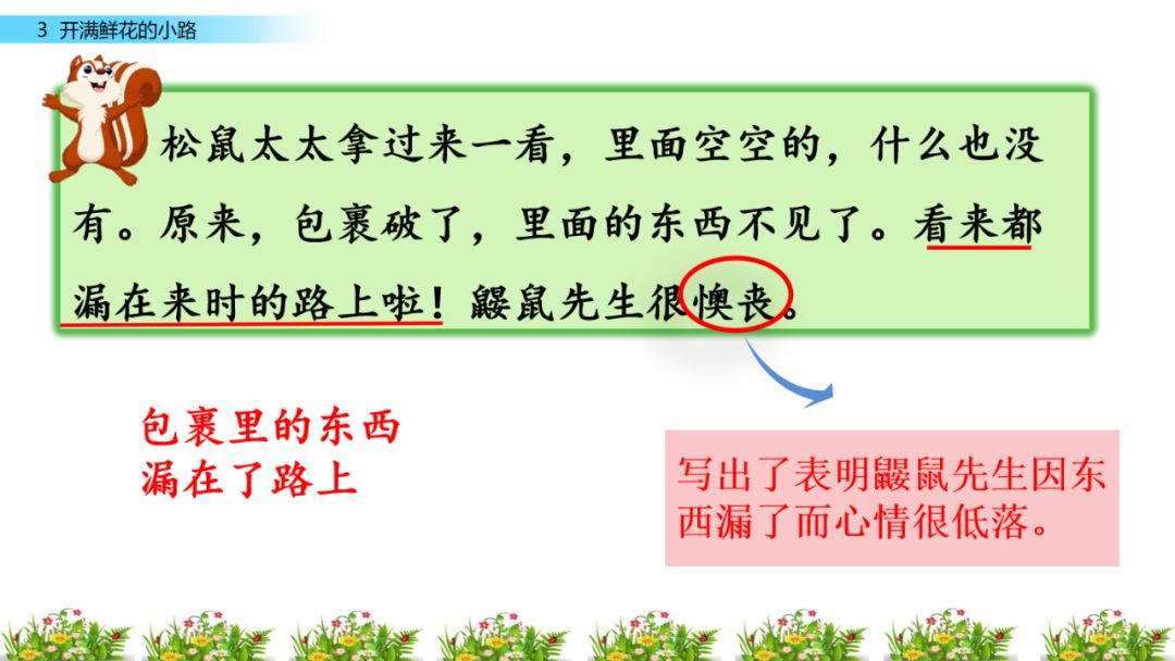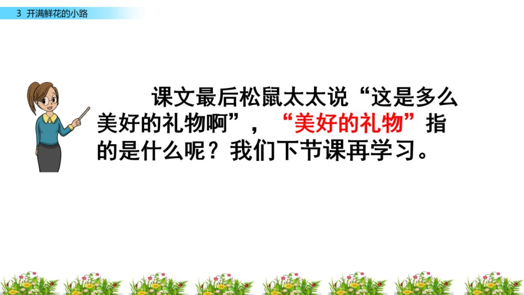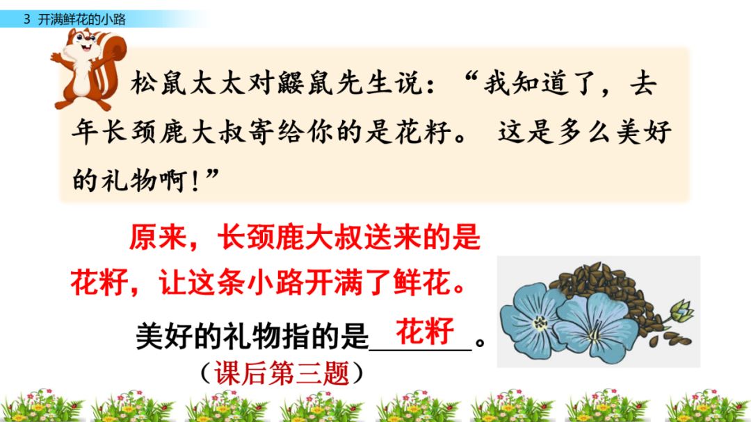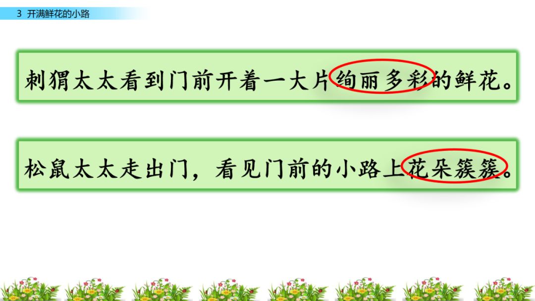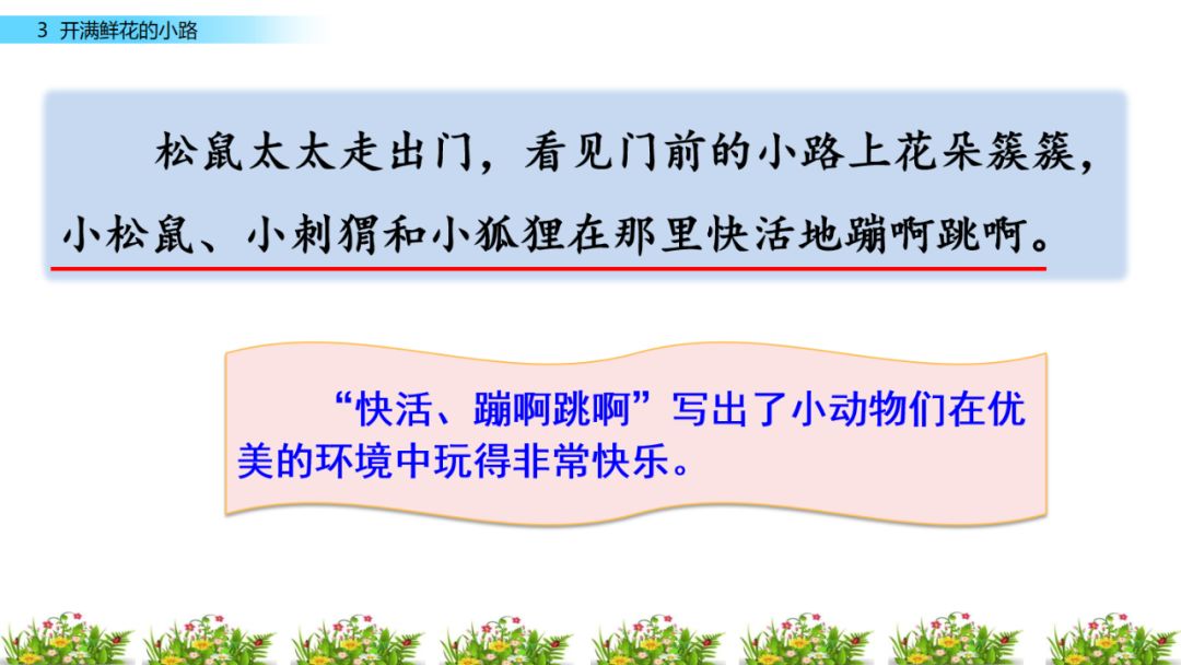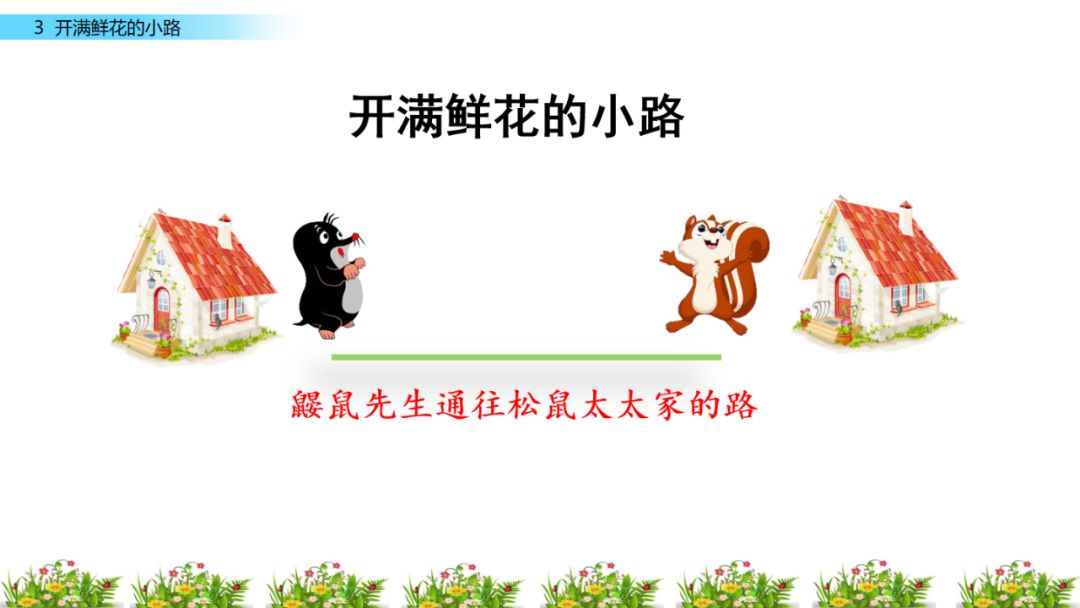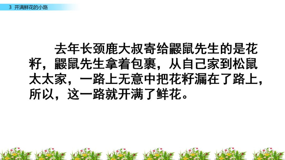 1、 啊,通往松鼠太太家的路,成了一条开满鲜花的小路。