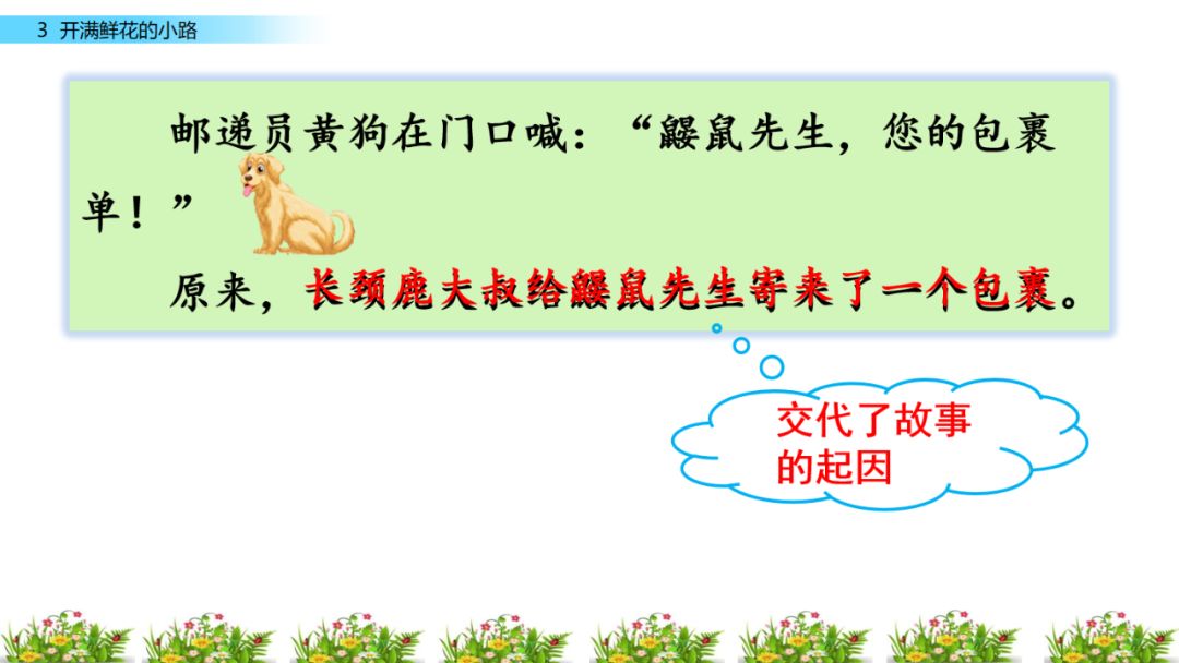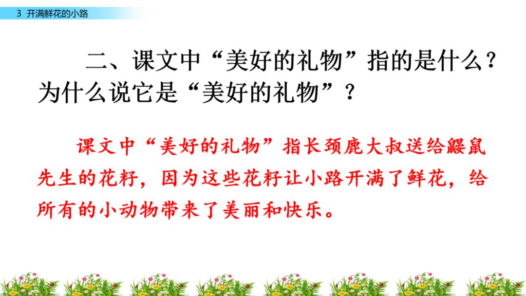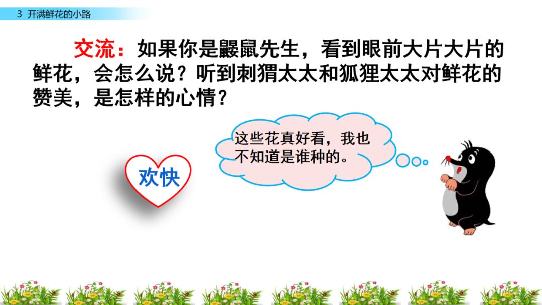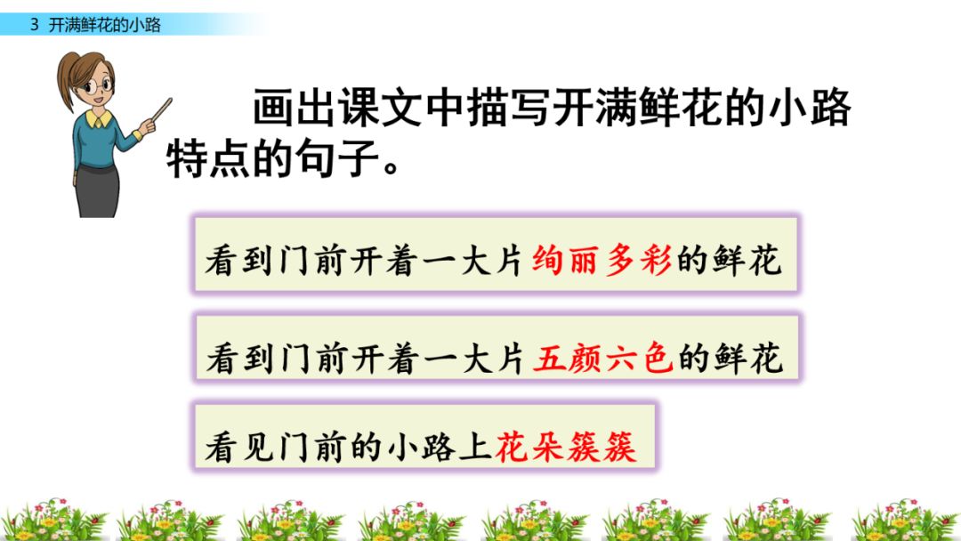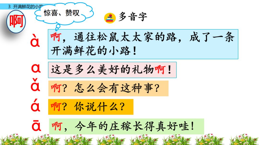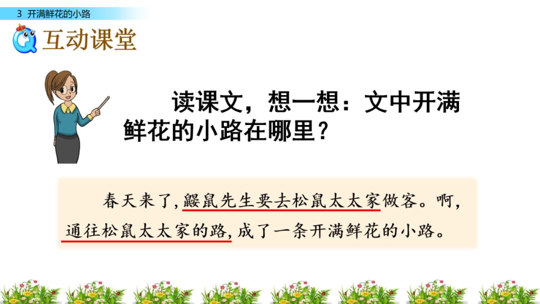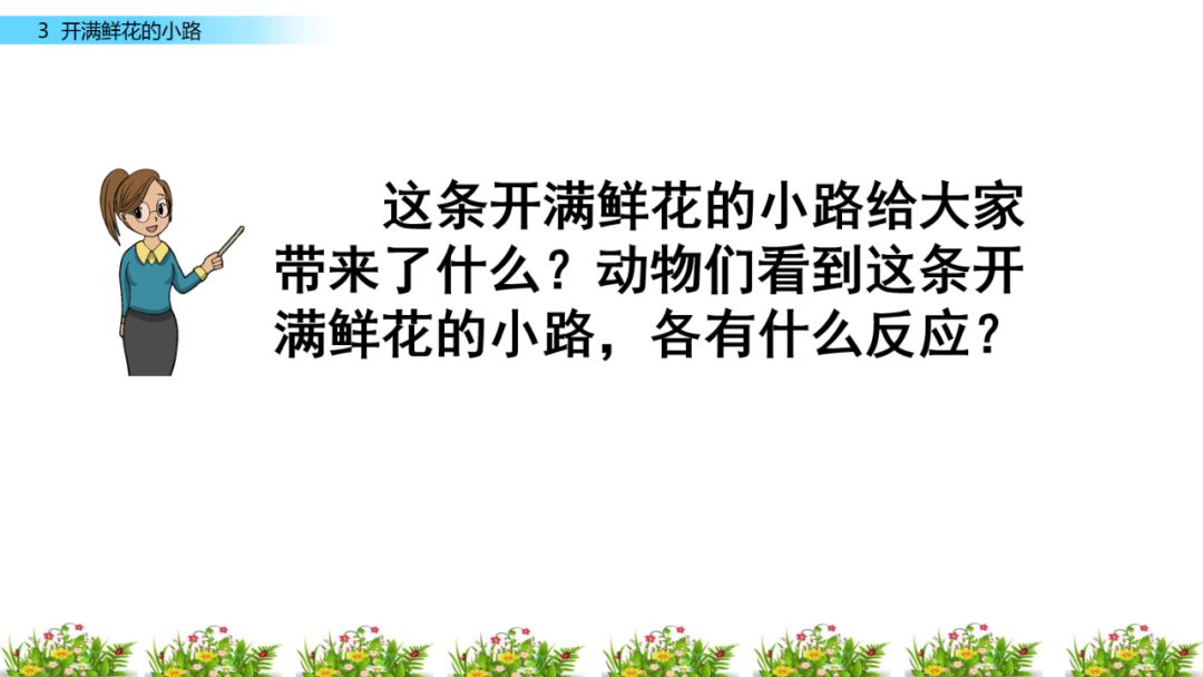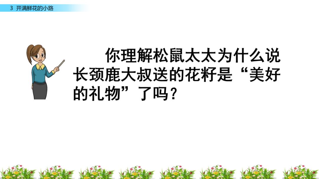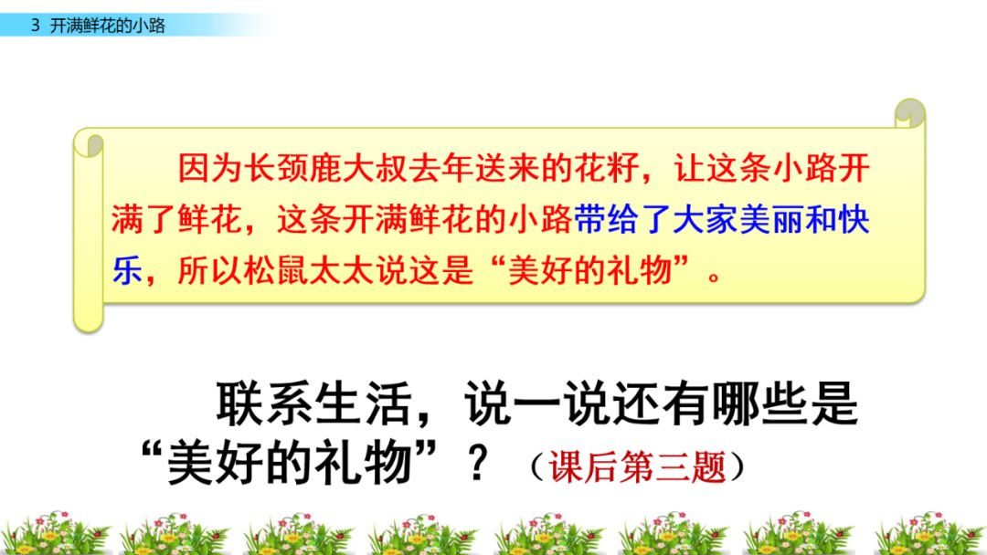 1、 啊,通往松鼠太太家的路,成了一条开满鲜花的小路。