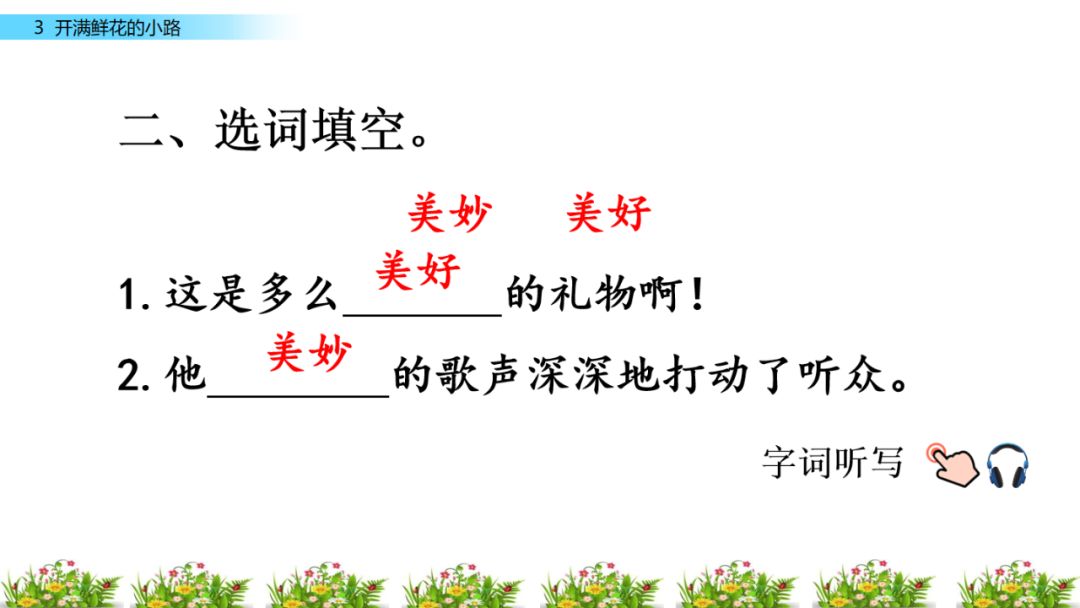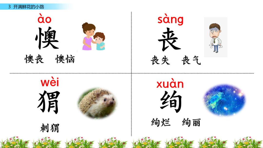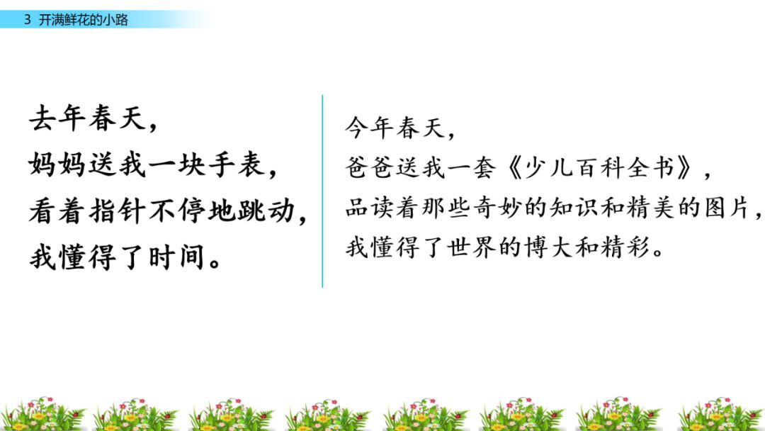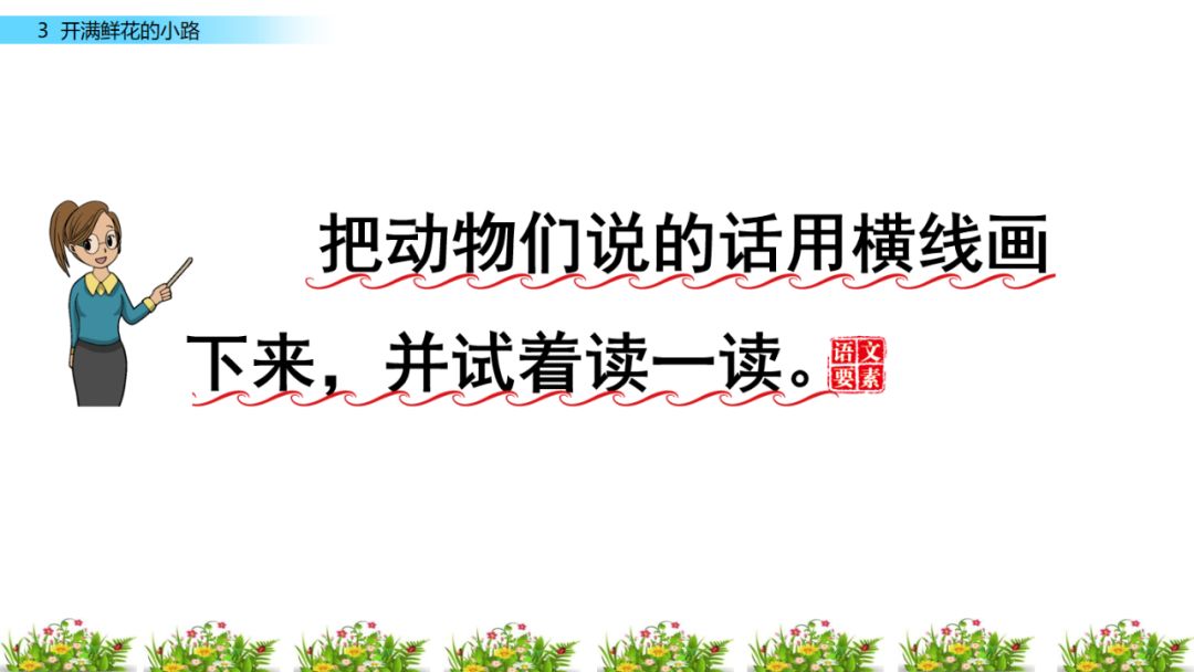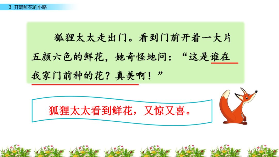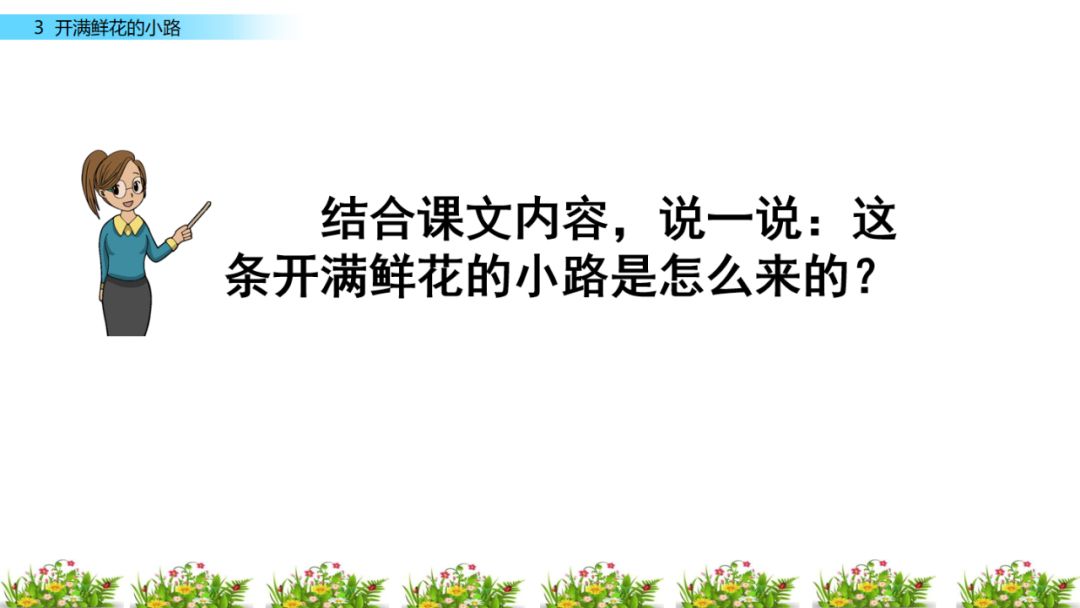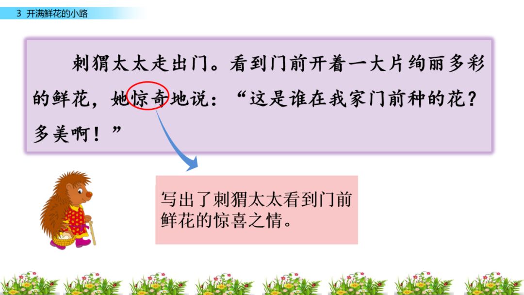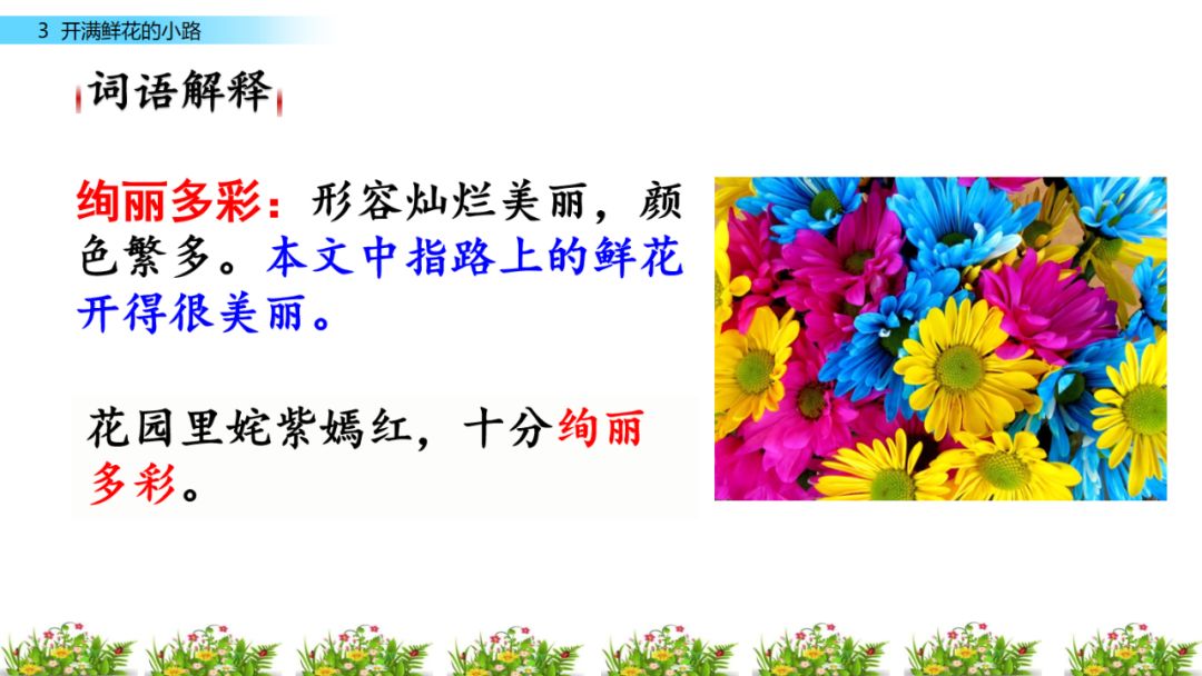 1、 啊,通往松鼠太太家的路,成了一条开满鲜花的小路。