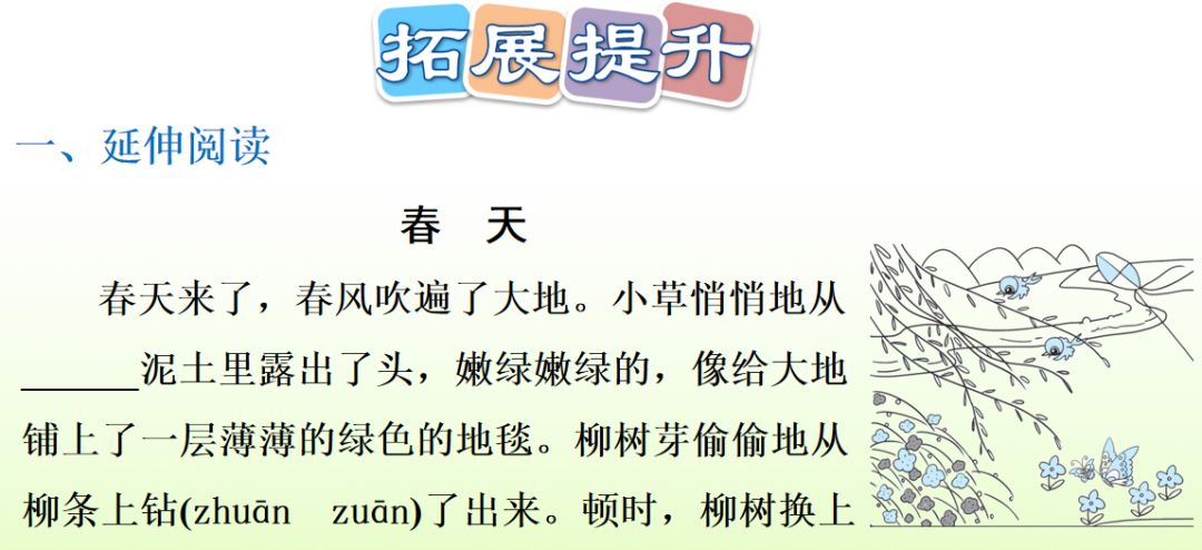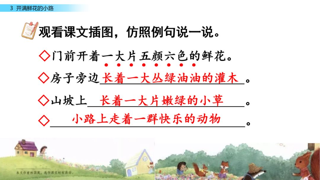 2、读一读,注意加点的部分。再看看课文插图,仿照例句说一说。