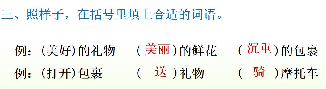 三、一 ( 个 )包裹 一( 堆 )小颗粒 一( 片 )鲜花
