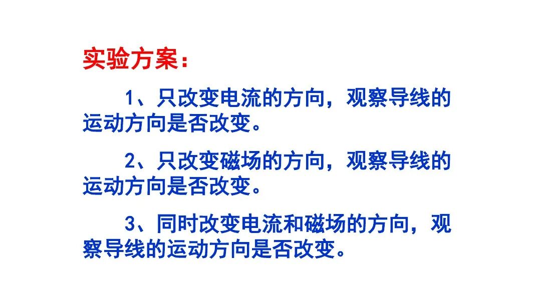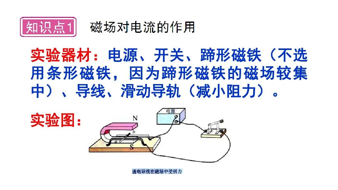 重点:磁场对通电导体有力的作用,及其作用力的方向与磁场方向和电流的关系.