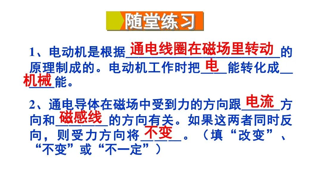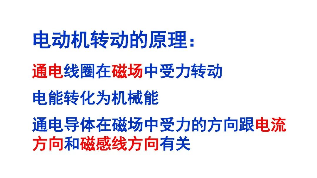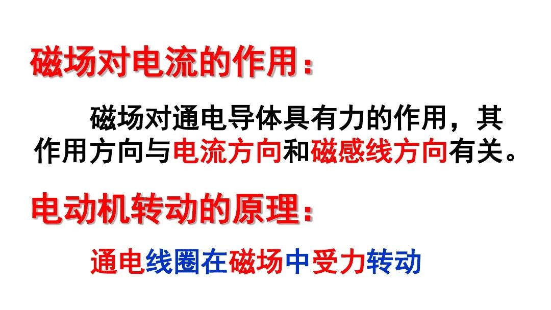 2.知道通电线圈在磁场中转动的道理.知道通电导体和通电线圈在磁场中受力而运动,是消耗了电能,得到了机械能.