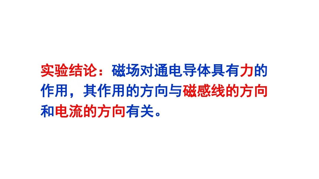 1.知道磁场对通电导体有作用力.知道通电导体在磁场中受力的方向与电流方向和磁场方向有关.