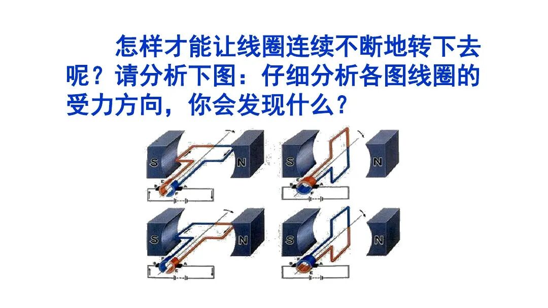 (2)展示1726“电动机的工作原理”ppt,引导学生分析: