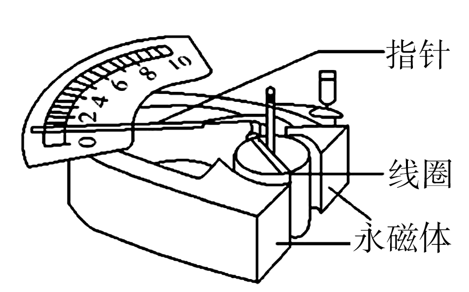 2. 如右上图为我们实验室所用电流表的内部结构示意图。当接入电路,有电流通过线圈时,线圈带动指针偏转。该电流表的工作原理是_ _。