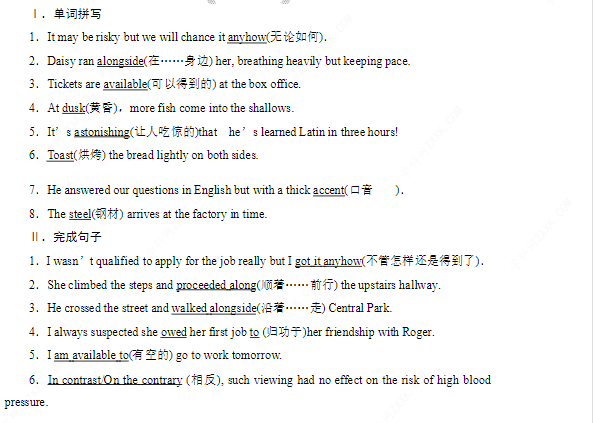 Unit4 Journey across a Vast Land Reading andThinking 练习题