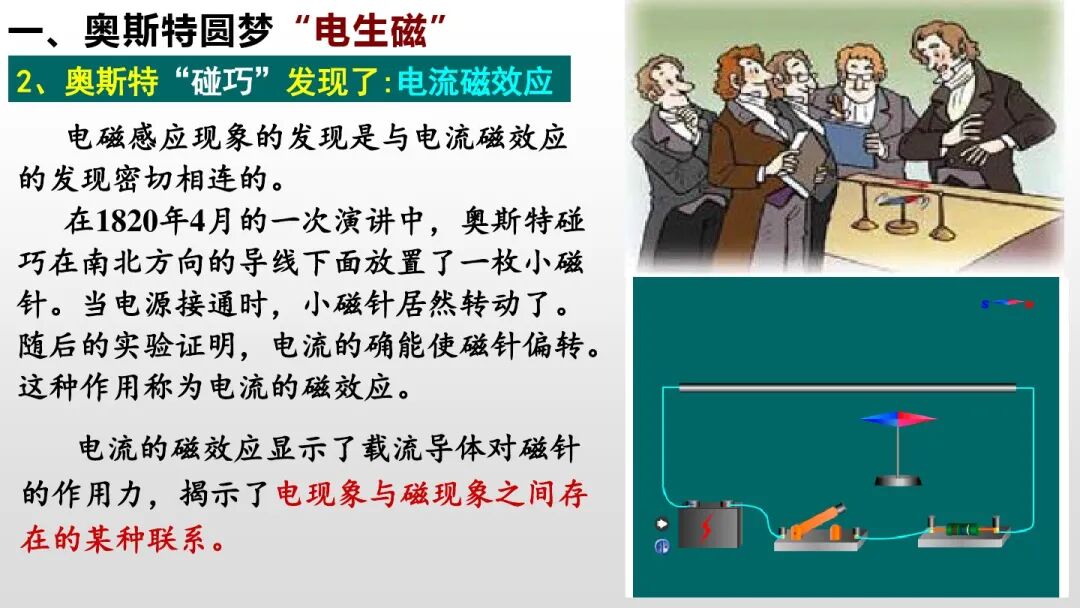 教师投影奥斯特实验,引出法拉第磁生电的理论。