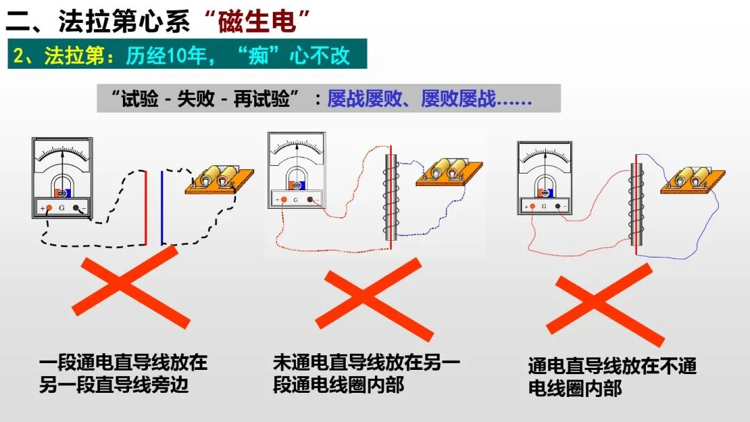 1825年,科拉顿做了这样一个实验,他将一个磁铁插入连有灵敏电流计的螺旋线圈,来观察在线圈中是否有电流产生。但是在实验时,科拉顿为了排除磁铁移动时对灵敏电流计的影响,他通过很长的导线把接在螺旋线圈上的灵敏电流计放到另一间房里他想,反正产生的电流应该是“稳定”的(当时科学界都认为利用磁场产生的电应该是“稳定”的),插入磁铁后,如果有电流,跑到另一间房里观察也来得及就这样,科拉顿开始了实验。然而,无论他跑得多快,他看到的电流计指针都是指在“0”刻度的位置。科拉顿失败了。科拉顿的这个失败,是一个什么样的失败呢?后人有各种各样的议论。