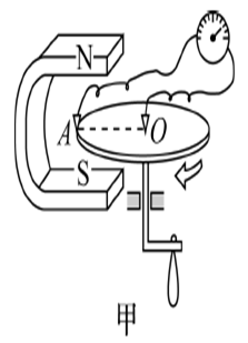 如图甲中金属圆盘半径在做切割磁感线运动.