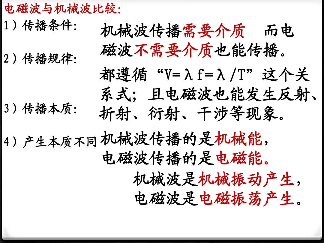 (3)电磁波可以在真空中传播,向外传播的是电磁能.