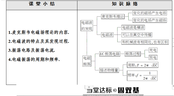 [学习目标]1.了解麦克斯韦电磁场理论的基本内容以及在物理学发展史上的意义.2.了解电磁波的基本特点及其发现过程,通过电磁波体会电磁场的物质性.(重点)3.理解振荡电流、振荡电路及LC电路的概念,了解LC回路中振荡电流的产生过程.(难点)4.了解电磁振荡的周期与频率,会求LC电路的周期与频率.