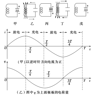 2.振荡电流、极板带电荷量随时间的变化图象(如图所示)