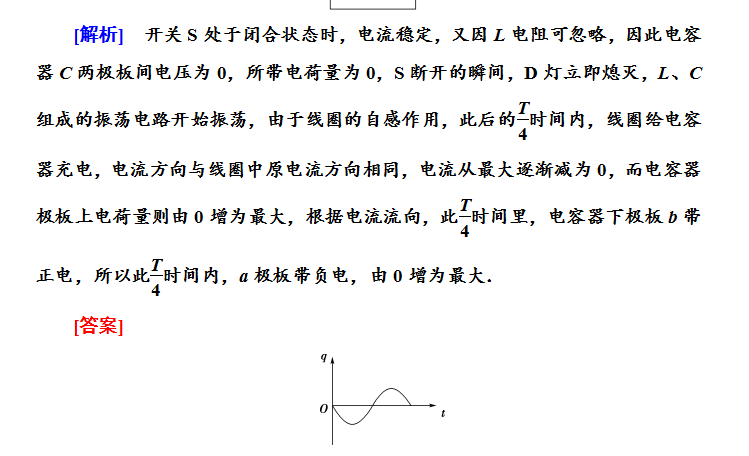 2.如图所示,L为一电阻可忽略的线圈,D为一灯泡,C为电容器,开关S处于闭合状态,灯D正常发光,现突然断开S,并开始计时,画出反映电容器a极板上电荷量q随时间变化的图象(q为正值表示a极板带正电).