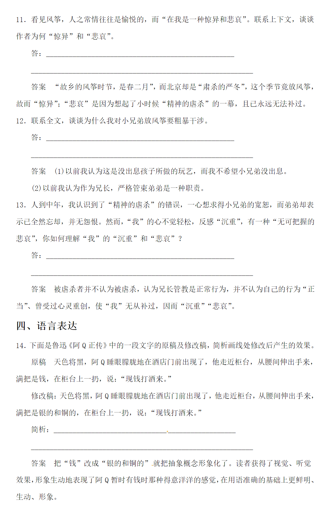 2、难点:“阿Q精神”的思想内涵和社会意义。