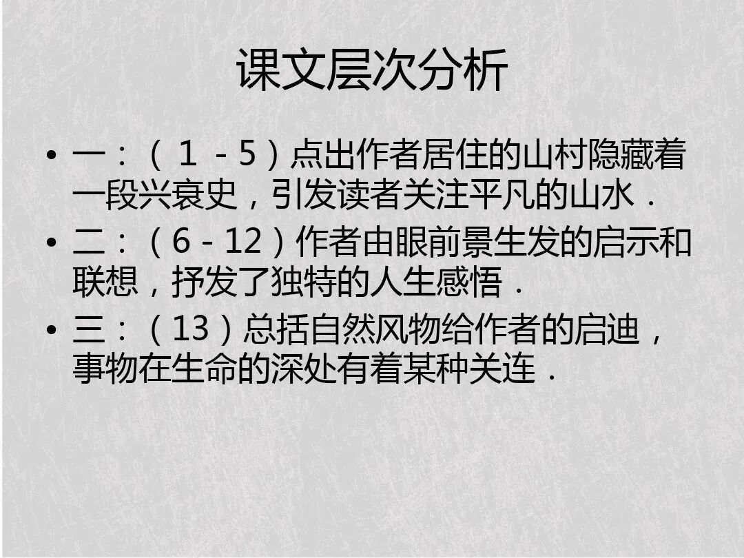 关键点:描绘眼前小溪——想像曾养育昔日的人们——感悟人类声息相通。