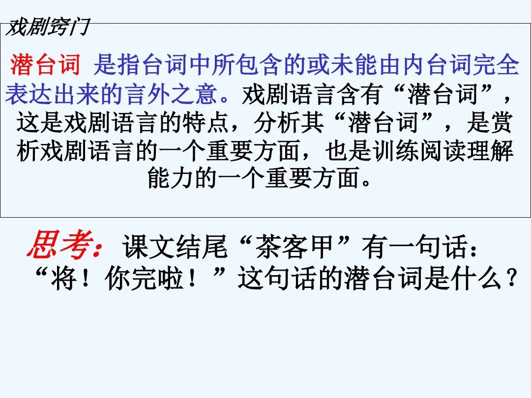 8、《茶馆》的语言特色最主要的就是真实、形象。