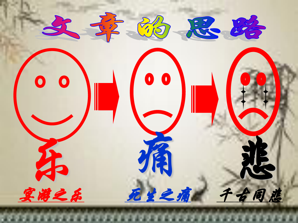 2.理解作者在文中由“乐”到“悲”的思想感情的变化,认识其深沉感叹中所蕴涵的积极情绪。