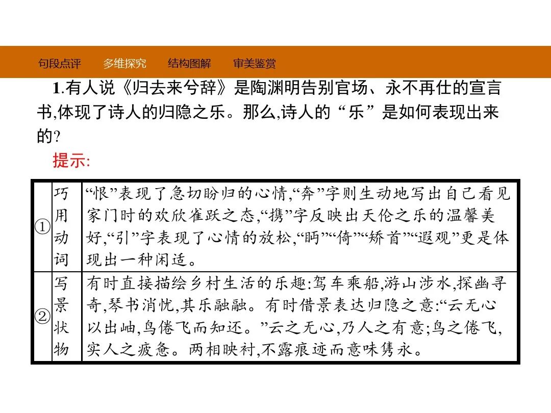 重点讲解:以“归去”两字为核心来解读本文,可以设定以下几个问题: