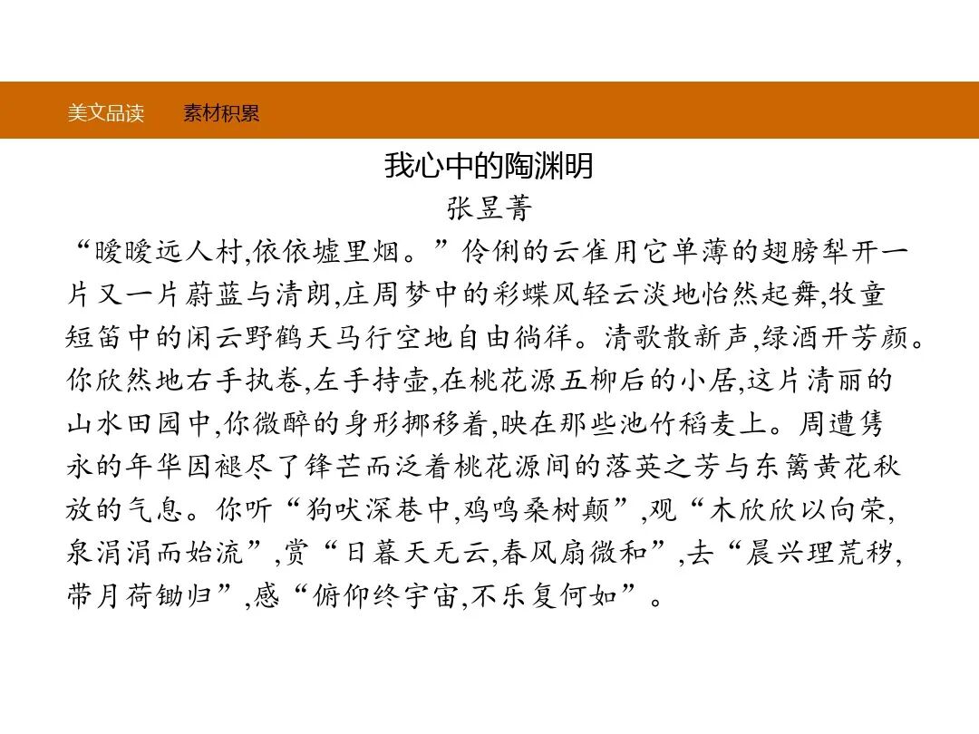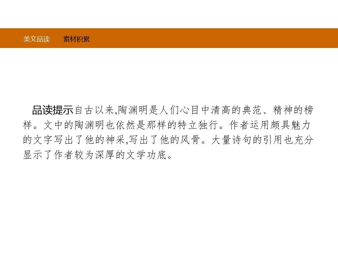 通过听录音使学生深切感受本文语言的流畅清新、音节铿锵,自然成韵的特点,使学生在美的情境中走近陶渊明这位田园大师,同时也为诵读打下基础。
