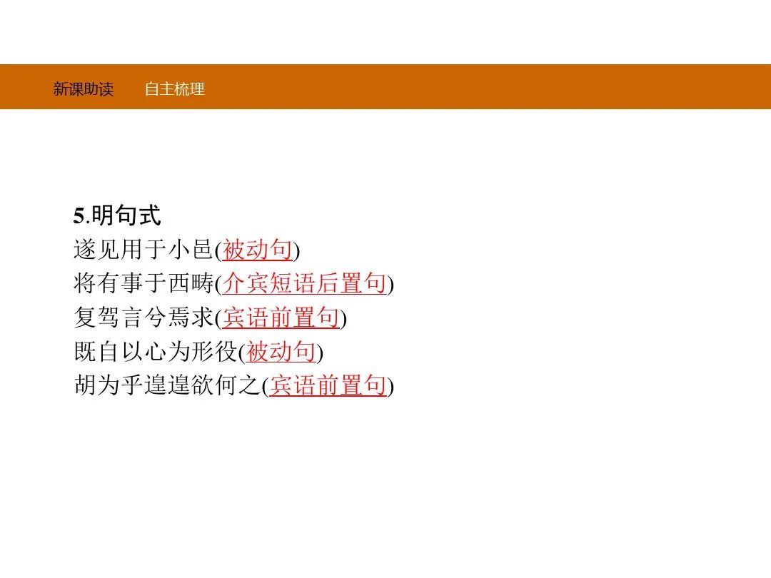 ⑤胡为乎遑遑欲何之(宾语前置)⑥乐乎天命复奚疑(宾语前置)