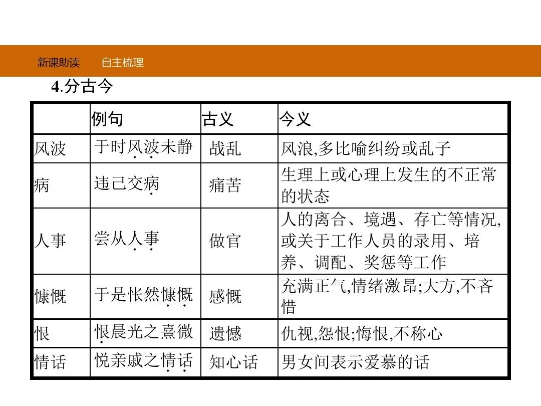 七、学生通读文章,疏通词句,总结重点字词句式: