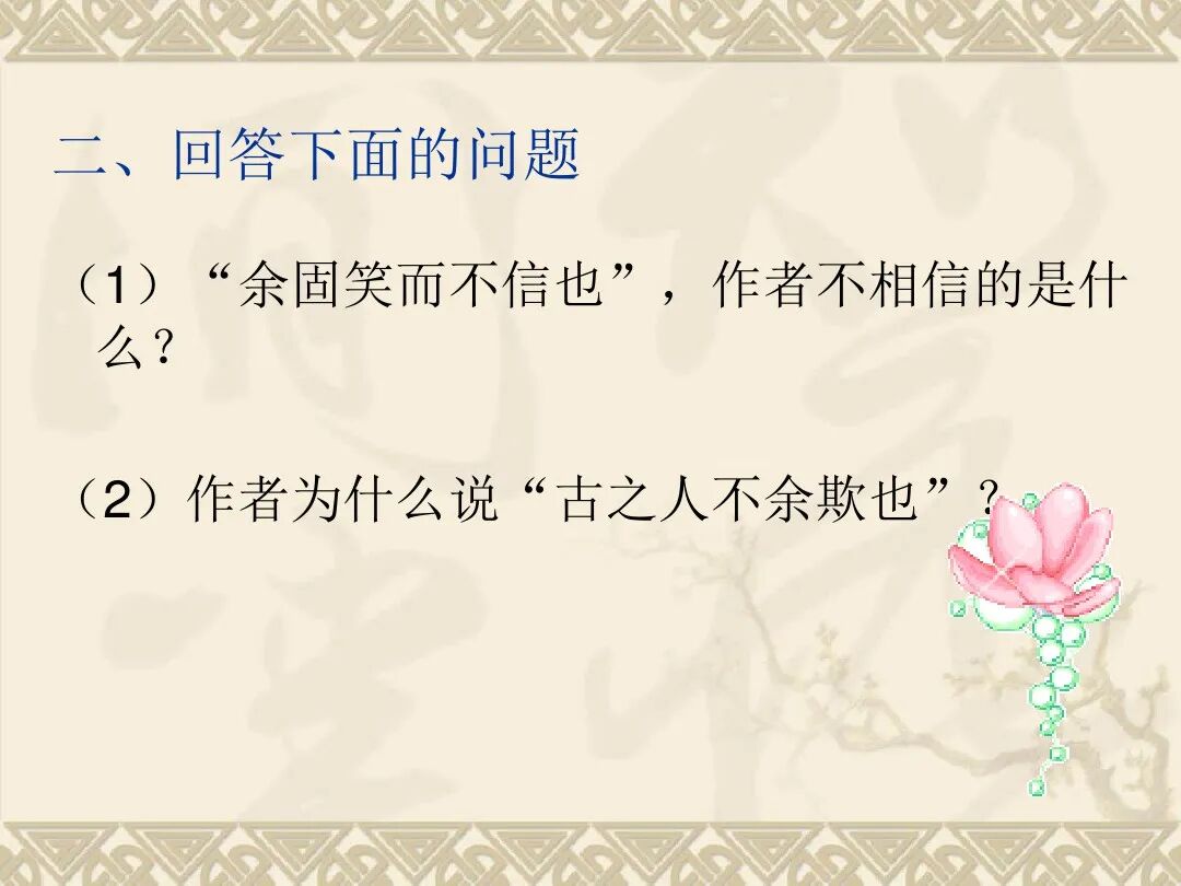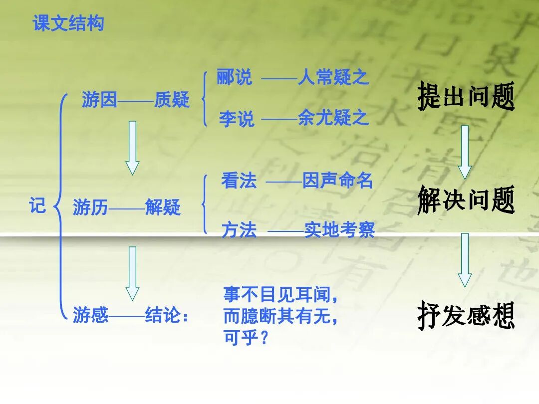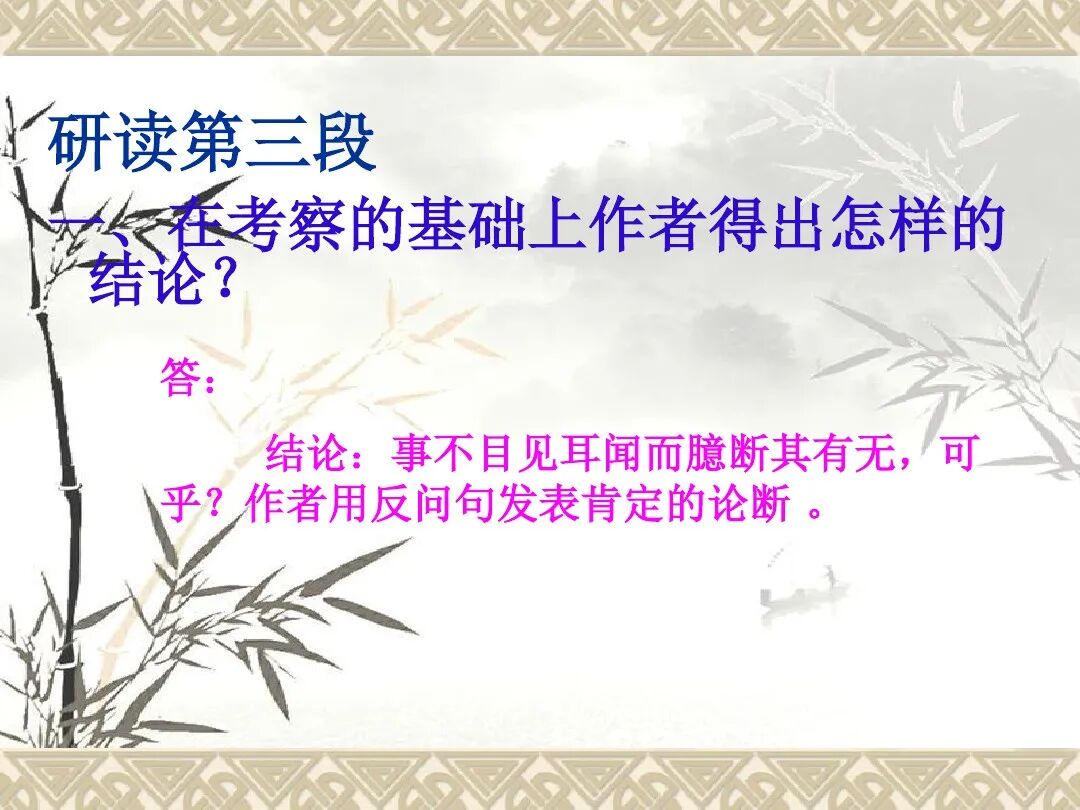 1.理解作者有疑必察、反对臆断、重视实地考察的精神。