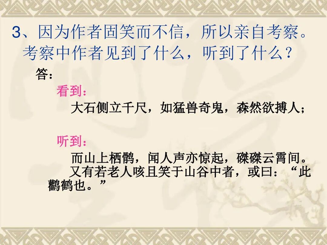 任何的事情不用眼睛看不用耳朵听,只凭主观臆断去猜测它的有或没有,可以吗?郦道元所看到的、所听到的,大概和我一样,但是描述它不详细;士大夫终究不愿用小船在夜里在悬崖绝壁的下面停泊,所以没有谁能知道;渔人和船夫,虽然知道石钟山命名的真相却不能用文字记载。