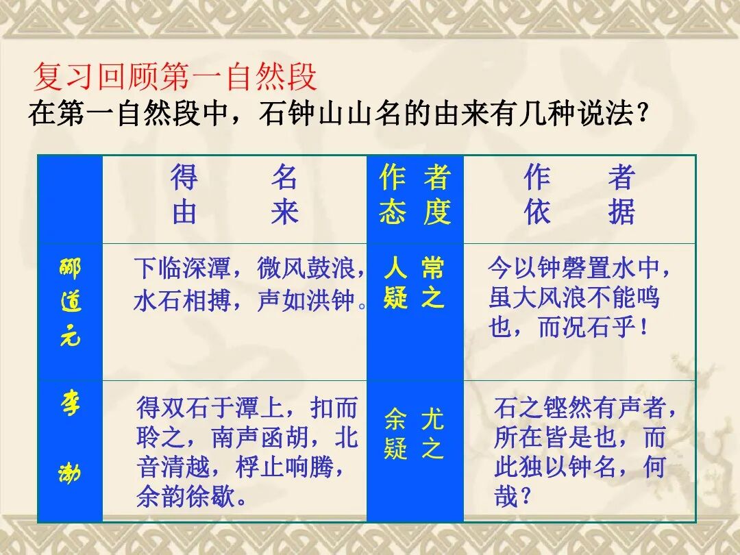 2、郦道元认为石钟山得名的原因是“_________,_________,_________,_________”。