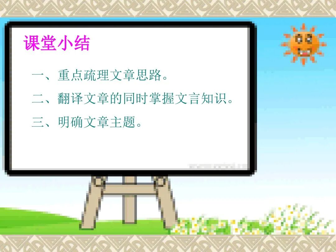 2.重点掌握“鼓”、“是”、“遗”、“得”等实词的用法。总结“而”的用法和否定句、疑问句中代词作宾语时,宾语前置的规则。