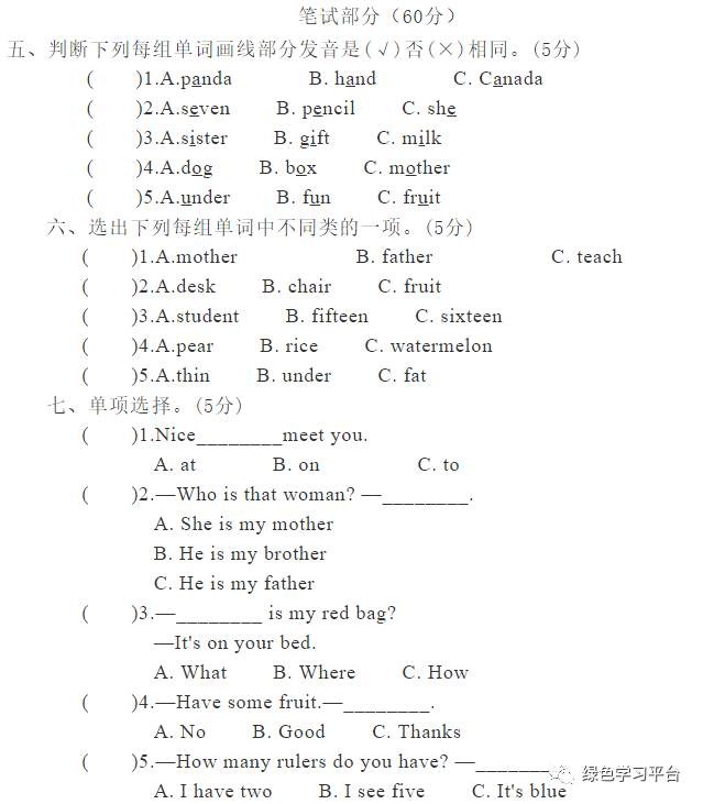 ( )1.A.Goodbye, Li Ming. B. Nice to meet you, Li Ming.