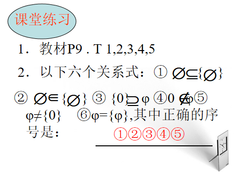 2.学生做教材习题,教师及时检查反馈.强调能确定是真子集关系的最好写真子集,而不写子集.