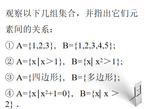 让学生通过观察身边的实例,发现集合间的基本关系,体验其现实意义.