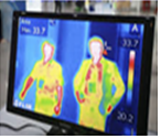 为做好新冠疫情防控,学校门口都装上了能快速检测体温的热成像仪(如图),该装置是靠接受人体发出的____(选填”紫外线”或“红外线”)来工作的:戴眼镜的同学戴上口罩后,眼镜上很容易起“雾”,这是因为呼出的高温水蒸气通过口罩上方的缝隙后,在镜片上发生了______(物态变化)生成的小水滴。