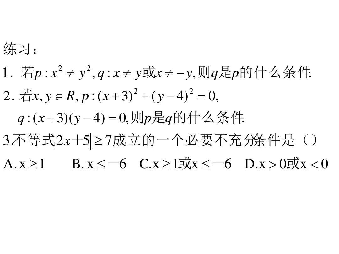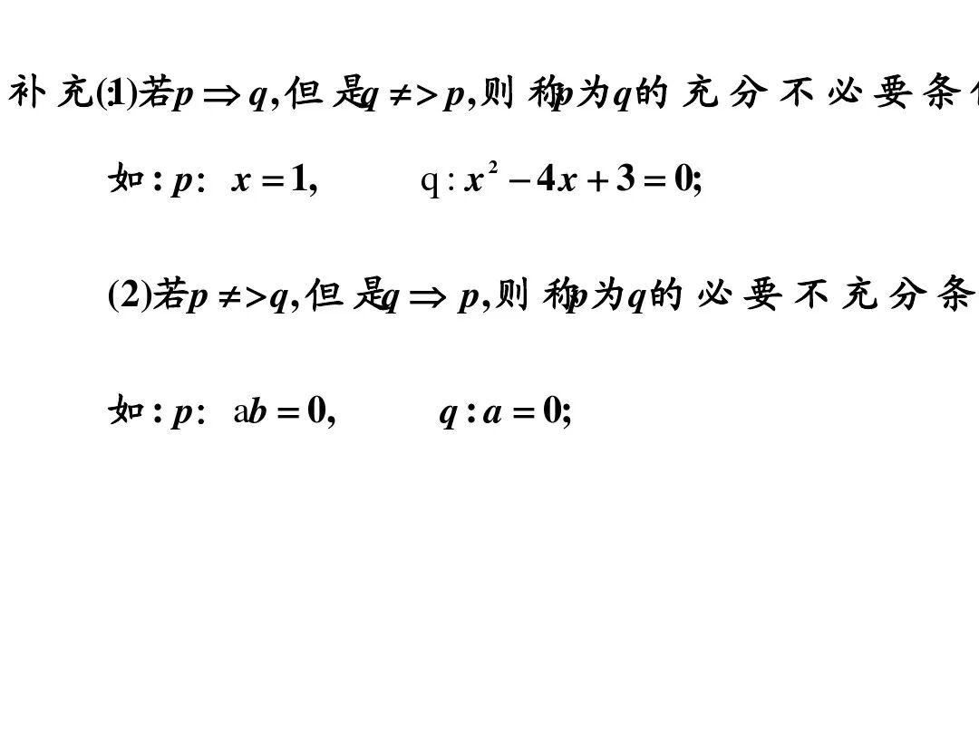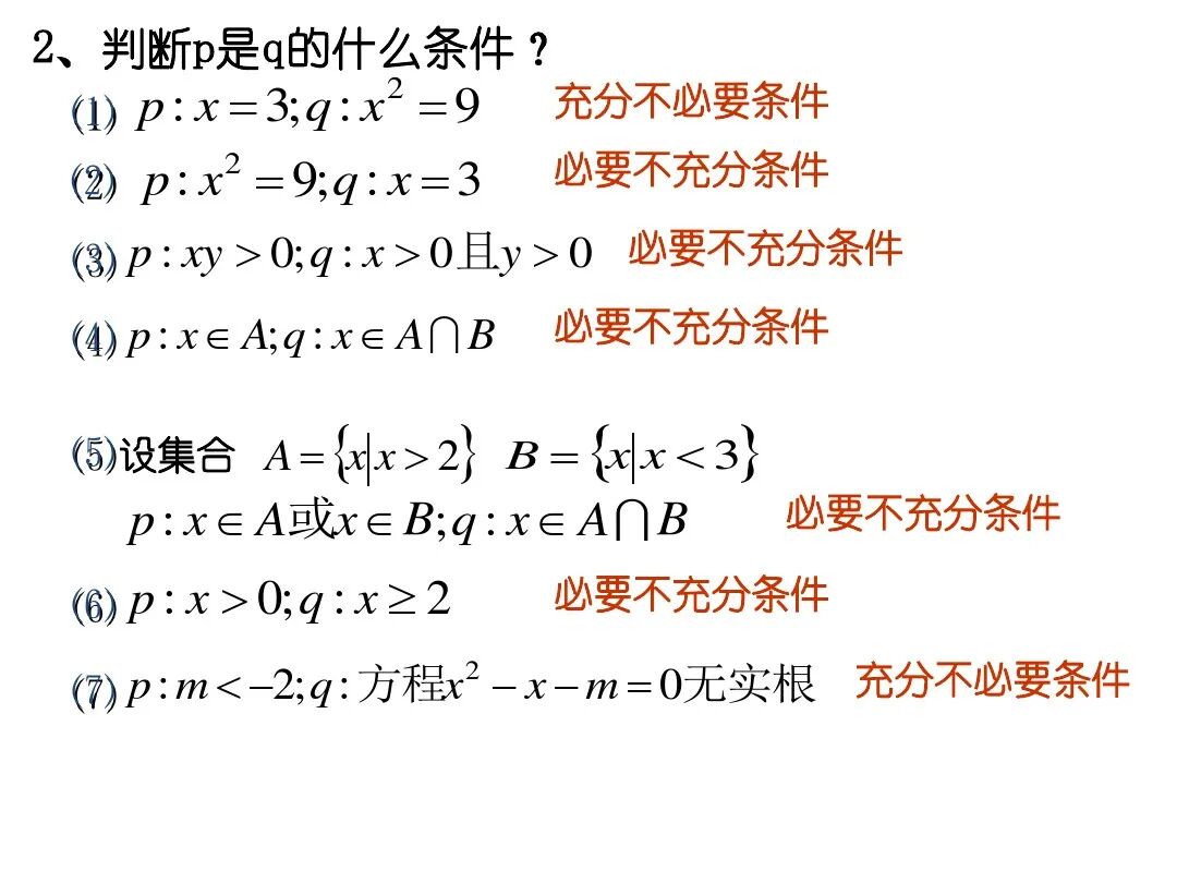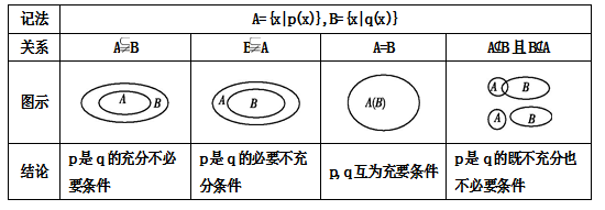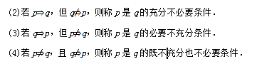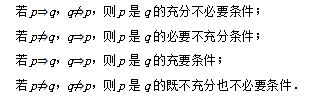 条件关系 | p是q的充分条件 q是p的必要条件 | p不是q的充分条件 q不是p的必要条件 |