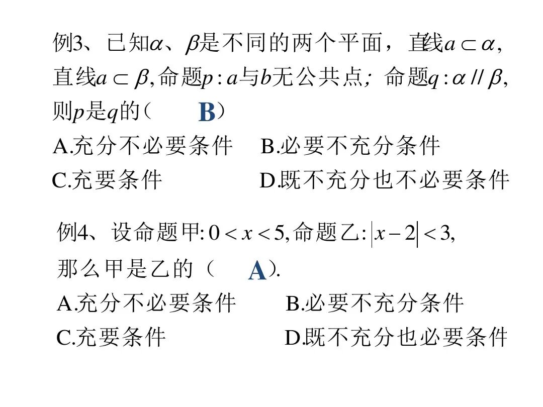 当命题“若 A 则 B”为真时,A 称为 B 的充分条件,B 称为 A 的必要条件。