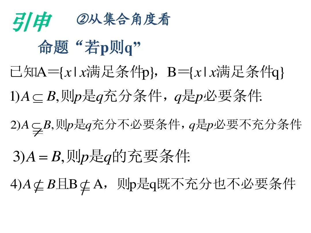 对于集合A={x|x满足条件p},B={x|x满足条件q},具体情况如下: