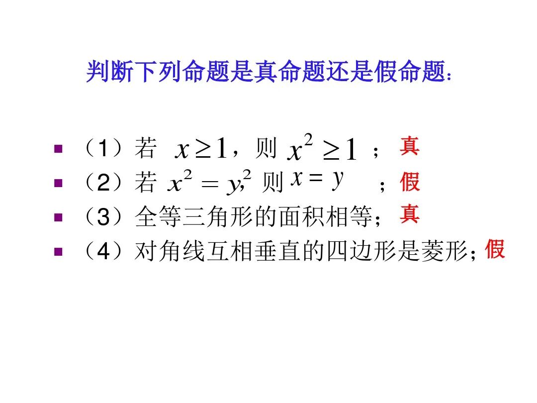 结论:看p能不能推出q,如果p能推出q,则原命题是真命题,否则就是假命题.