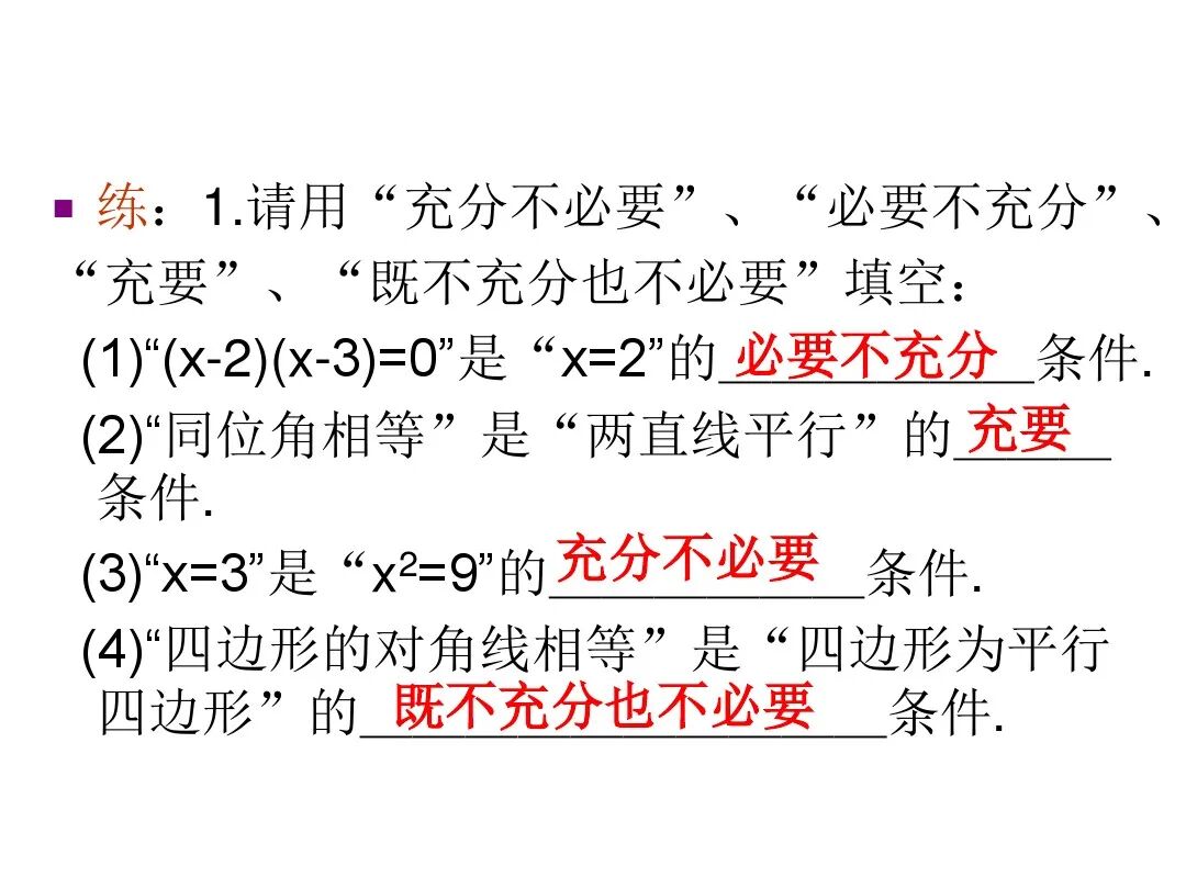 (3)由(a-2)(a-3)=0可以推出a=2或a=3,不一定有a=3;由a=3可以得出(a-2)(a-3)=0.因此,p是q的必要不充分条件.